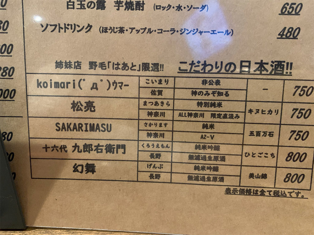 「254BeeR」はビールが美味しいのはもちろんなのですが、日本酒も豊富です。姉妹店 野毛「はあと」が厳選したこだわりの日本酒。私は飲まなかったのですが、一緒に行った方が飲んでいて、「うまい!」と言っておりました。次回飲んでみたい(が、結局ビールばかりになりそうですw)