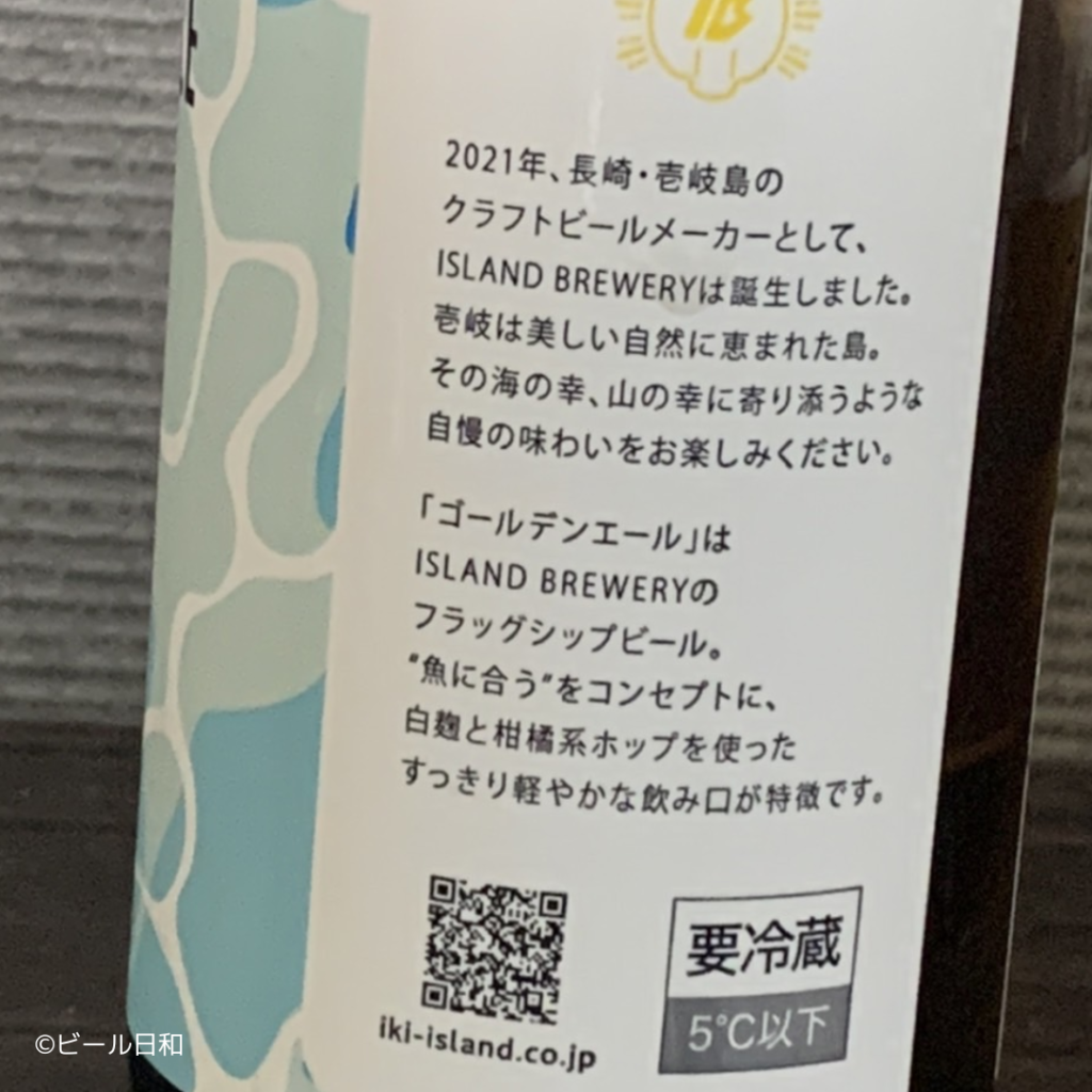長崎・壱岐島のクラフトビールメーカーISLAND BREWERYのフラグシップ・ビール「ゴールデンエール」。魚に合うをコンセプトに、白麹