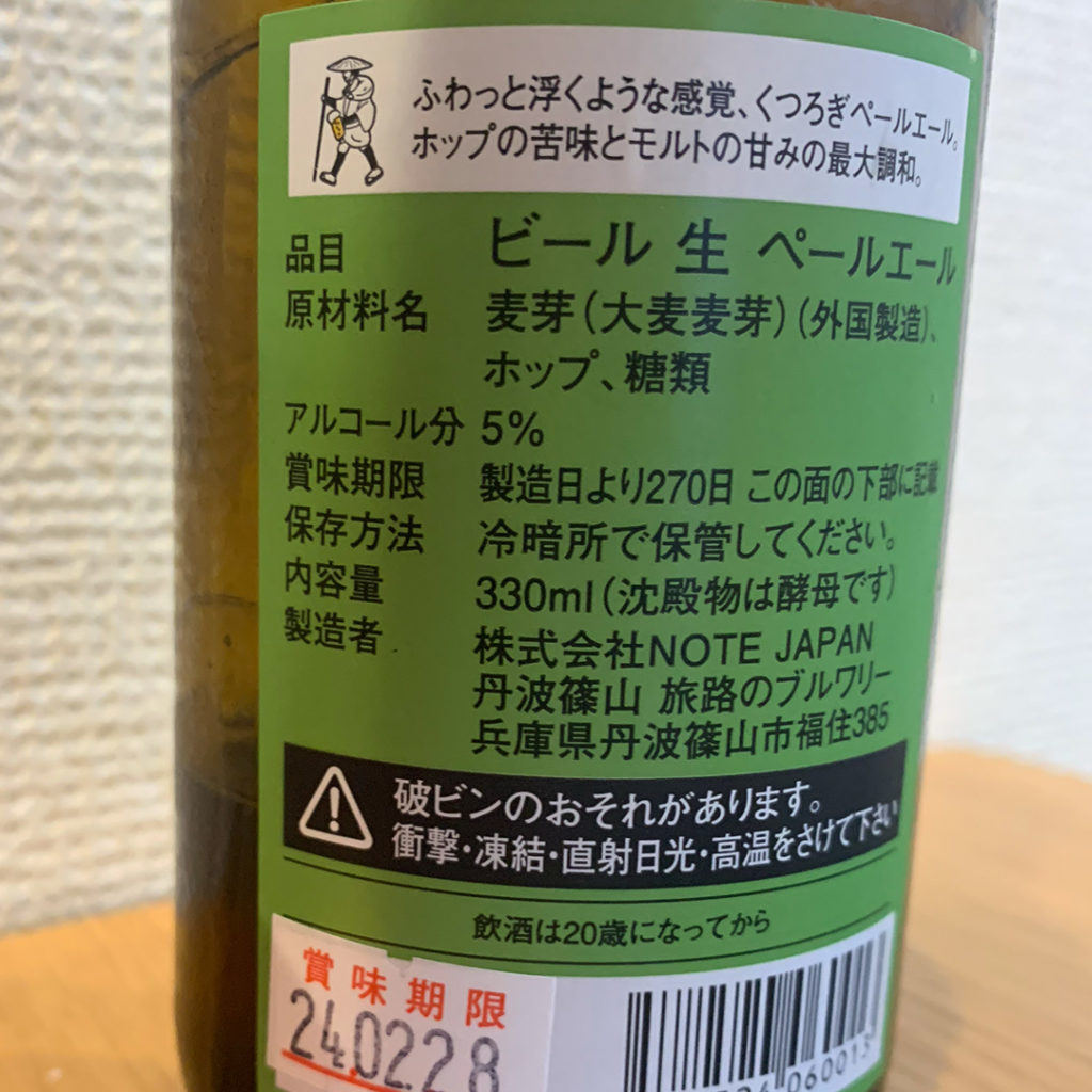 | 製造者 | 丹後篠山 旅路のブルワリー 株式会社NOTE JAPAN(日本・兵庫県) |